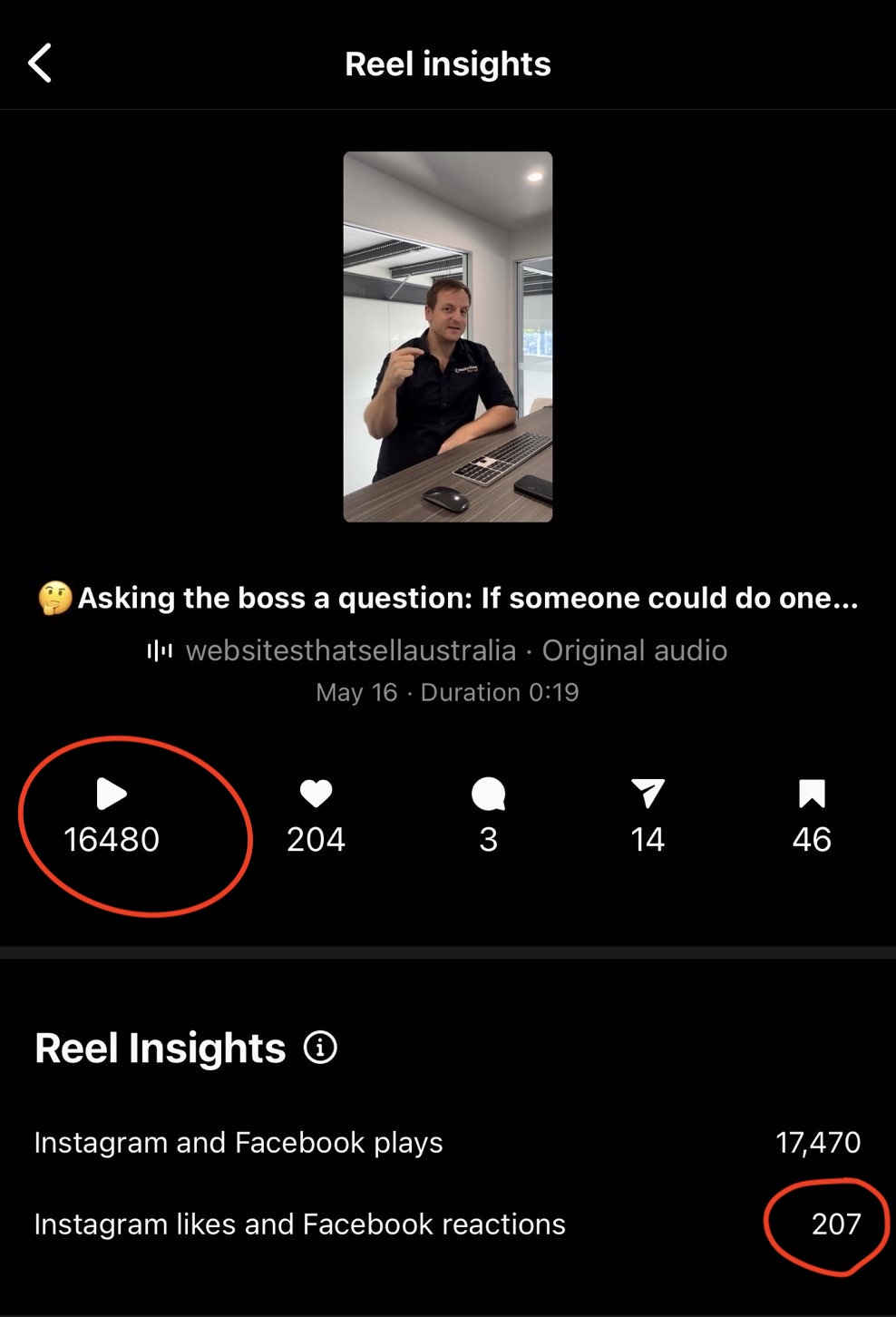 In total, this one reel got us in front of 16,480 people who don't follow Websites That Sell.